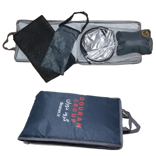 دارای آفتابگیر عینکی، کیسه زباله، زیر انداز مسافرتی، بالشتک پشت گردنی و ساک دستی