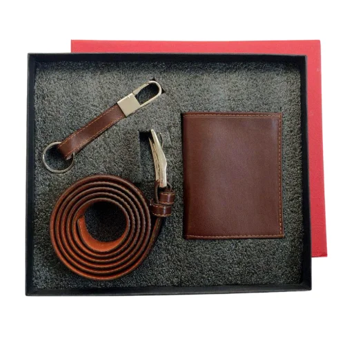 ست هدیه چرم S30 شامل کیف پالتویی، کمربند و جاکلیدی چرم گاوی طبیعی با طراحی شیک و کیفیت بالا. مناسب برای هدیه به آقایان در مناسبتهای مختلف. این ست بهویژه برای خرید تعداد حداقل 20 ست بهعنوان هدیه تبلیغاتی یا سازمانی مناسب است.